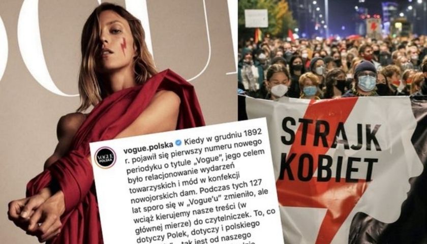 Zniewolona Anja Rubik na okładce świątecznego Vogue’a jako symbol walki o prawa kobiet