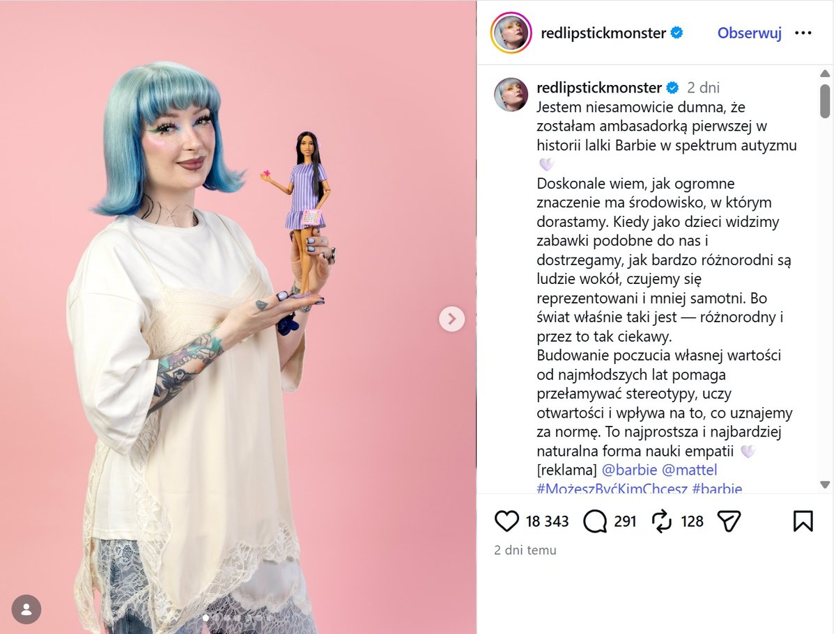 Polską ambasadorką pierwszej w historii lalki Barbie w spektrum autyzmu została infuencerka