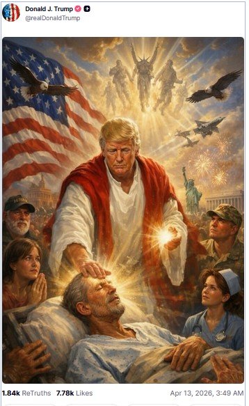 To jednak nie koniec przemyśleń amerykańskiego prezydenta. Na swoim profilu w serwisie Truth Social zamieścił wygenerowaną przez sztuczną inteligencję