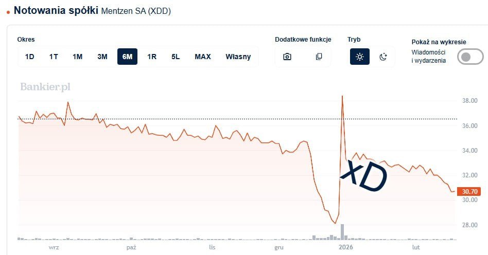 , który za pośrednictwem swojej fundacji rodzinnej kupił pod koniec grudnia 2025 znaczący pakiet akcji, co wywindowało notowania. 30 grudnia Fundacja Rodzinna Mentzen kupiła na NewConnect 10 574 akcji, po średniej cenie wynoszącej 35,85 zł, a kurs spółki wzrósł wówczas aż o 33%. Jak przekazała KNF, analiza tej sprawy wciąż trwa.