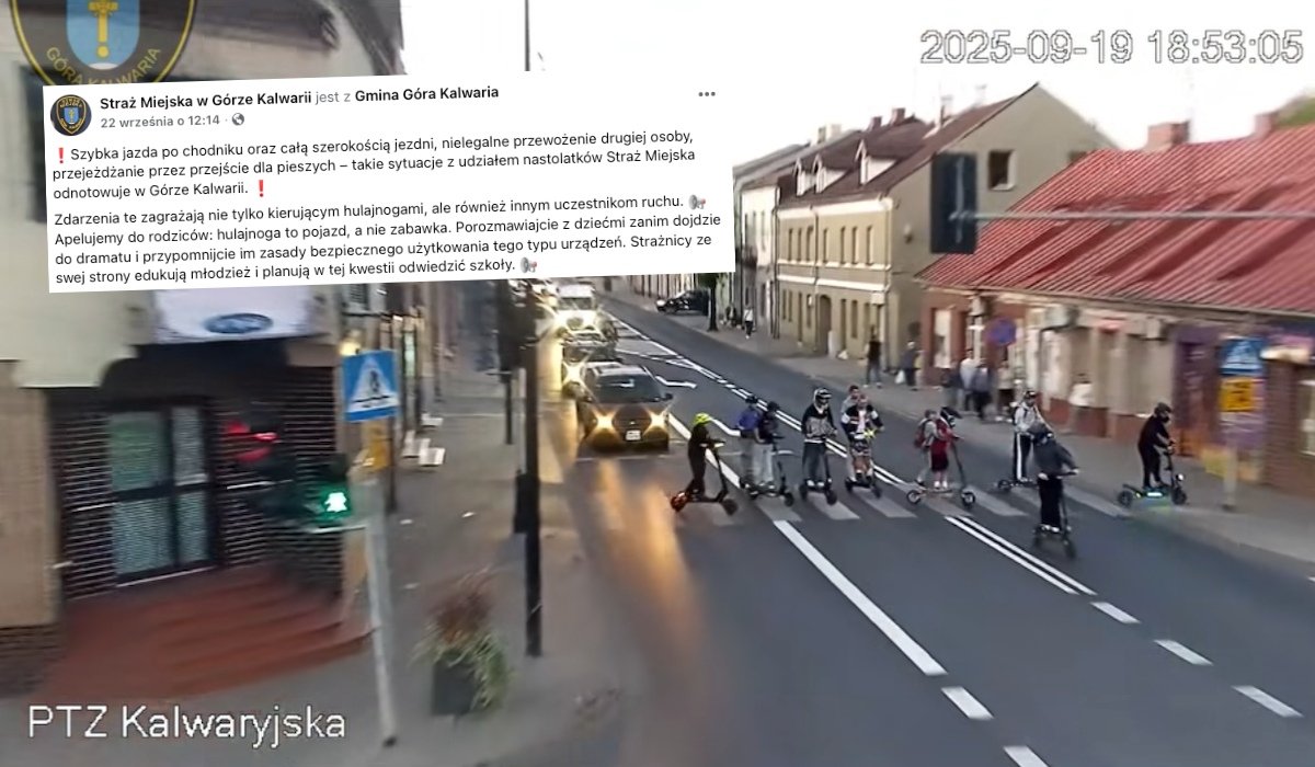 "Szybka jazda po chodniku oraz całą szerokością jezdni, nielegalne przewożenie drugiej osoby, przejeżdżanie przez przejście dla pieszych - takie sytuacje z udziałem nastolatków Straż Miejska odnotowuje w Górze Kalwarii. Zdarzenia te zagrażają nie tylko kierującym hulajnogami, ale również innym uczestnikom ruchu.