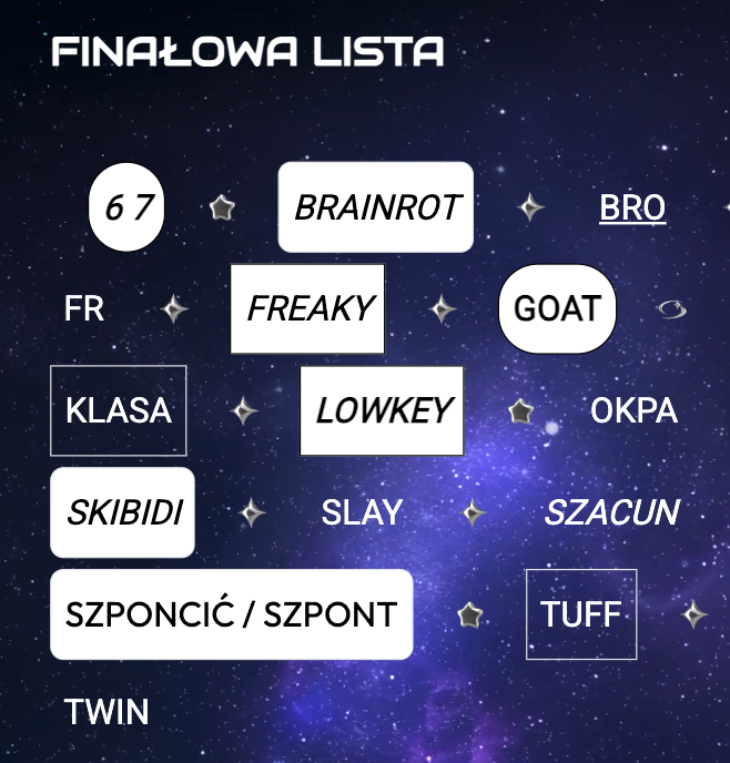 "skibidi", "tuff" i "szponcić"
