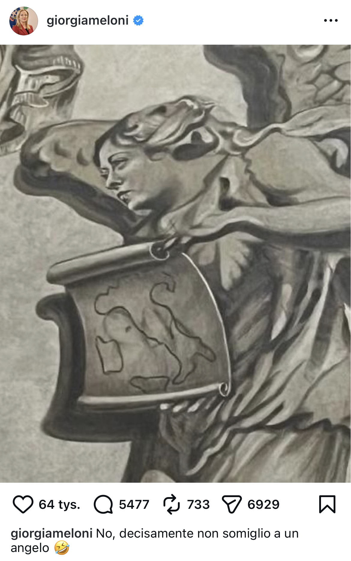 Sama Meloni żartobliwie skomentowała aferę, pisząc na Instagramie, że "nie wygląda jak anioł".