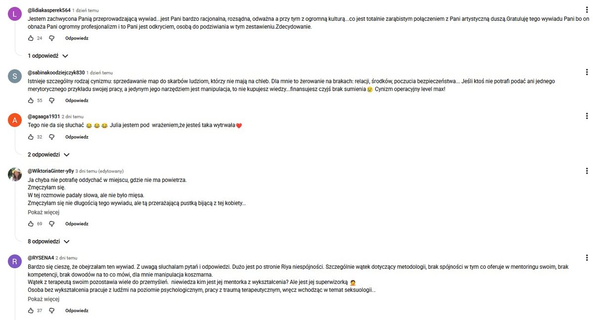- którą podobno prowadząca przeczytała. Nie chciałam wypuszczać tej rozmowy. Uważam, że to brak szacunku do widza, narażać na prywatne triggery moje i prowadzącej. A jednocześnie dostałam setki wiadomości od ludzi, którzy mówią - Julia atakuje w taki sposób, jak mnie atakują ludzie / rodzina / anonimy z Internetu. I że dziękują, że mówię ich głosem i pokazałam, "jak nie dać się wkręcić w pasywną agresję i w to, że NAUKA JEST WAŻNIEJSZA OD TEGO CO CZUJEMY" - powiedziała.