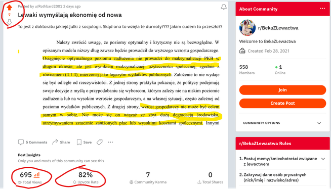 Jak widać ponad 80% prawaków zgadza się z opinią, że ten fragment to jakieś lewackie brednie dalekie od Prawdziwej Ekonomii (czyi jedynie słusznej szkoły Austriacko-Paróweczkowej).