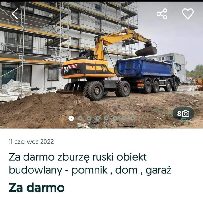 Firma budowlana oferuje burzenie rosyjskich budynków za darmo